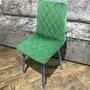 Классический обеденный стул без подлокотников на металлических ножках плоской формы. Мягкая обивка выполнена из велюра - прочного, износостойкого и приятного на ощупь материала. Внутренняя сторона сиденья и спинки украшена геометричной строчкой.
