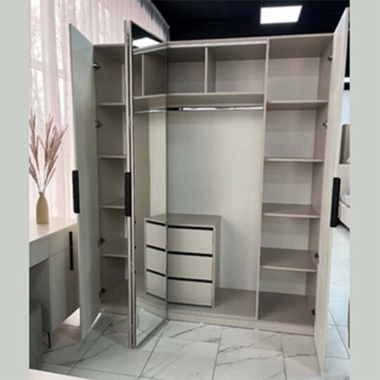 Вместительный  6 дверный шкаф со встроенным комодом, бесшумное и плавное закрывание дверей благодаря петлям с доводчиками, направляющие скрытого монтажа с доводчиками.