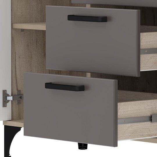 Ширина мм:900 Высота мм:814 Глубина мм:400 Цвет:Софт Графит / Дуб Крафт Серый Материал корпуса:ЛДСП Материал фасадов:МДФ Бренд:​SILVA