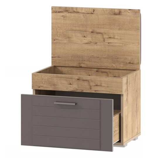 Компактная тумба Livorno НМ 040.63 совмещает в себе функции обувницы и банкетки. Модуль оснащен выдвижным ящиком для размещения в нем повседневной уличной обуви. Под откидной крышкой тумбы скрывается отсек для мелочей. В состав модуля также входит мягкий элемент, который делает процесс сборов комфортным.