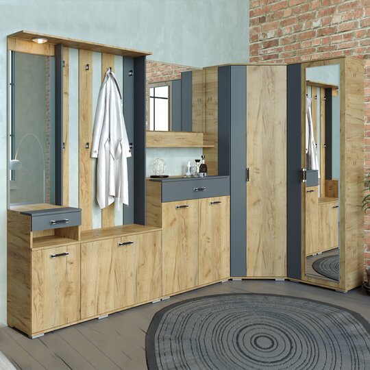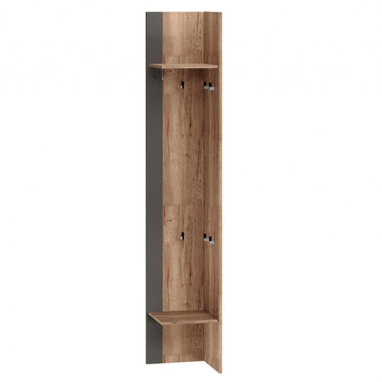 Угловое окончание займет свое место в модульной прихожей и закроет потребность в открытом хранении верхней одежды.