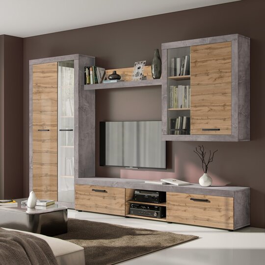 Стенка серии Oslo BRW – универсальный комплексный вариант для обустройства современной функциональной гостиной. Такая мебель подчеркнет достоинства интерьера, став его изюминкой. Дизайн стенки достаточно универсален, поэтому она сможет гармонично смотреться в любом интерьере, а размер – компактен, что позволяет применять ее даже в маленьких помещениях.