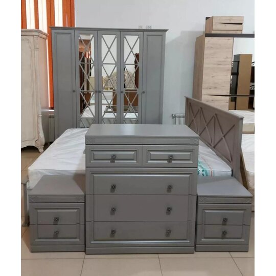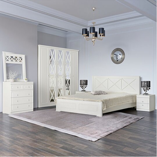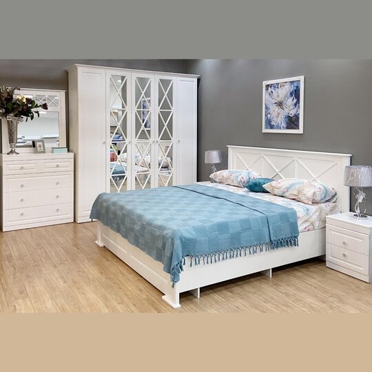 Спальня Александрия с филенчатыми фасадами создаст в любом помещении спокойную и жизнерадостную атмосферу, подарит ощущение чистоты и станет олицетворением изысканного вкуса владельцев. Лаконичный набор мебели обеспечит комфортный сон и отдых.⠀