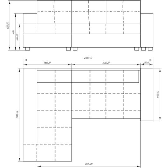 • габариты ШВГ: 2700*850*1800 мм. Спальное место 1700*2150 мм.